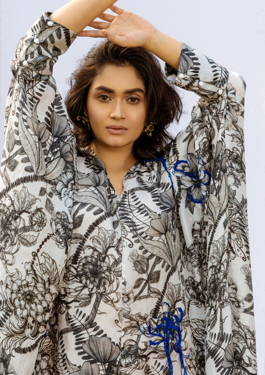 BOTANICAL SYMPHONY BAT SLEEVE KAFTAN