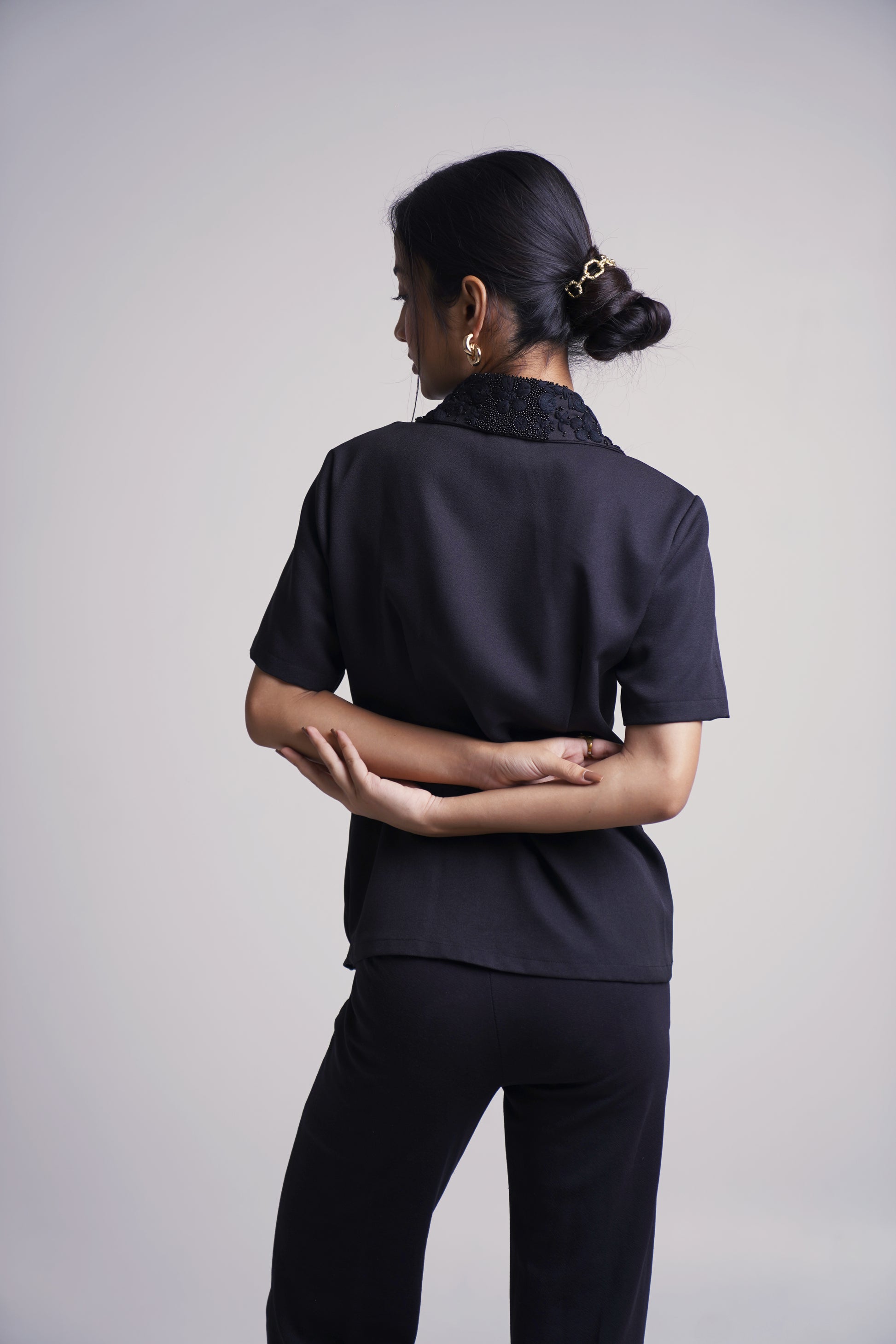 Embroidery: Tone-on-tone hand embroidery on the collar for added